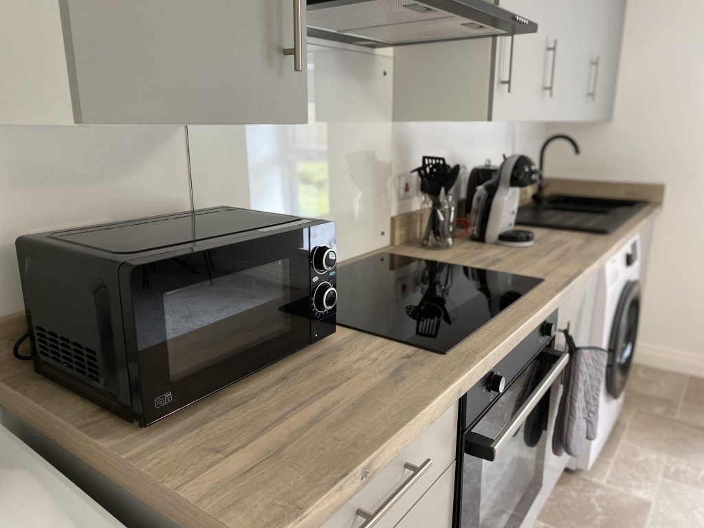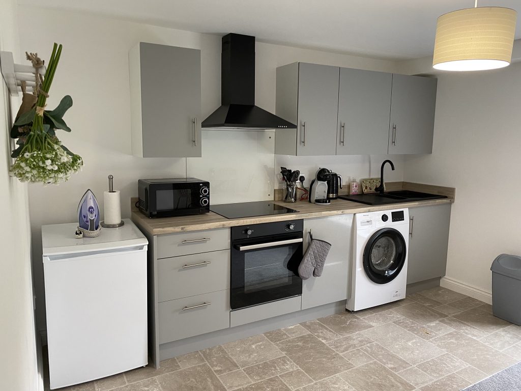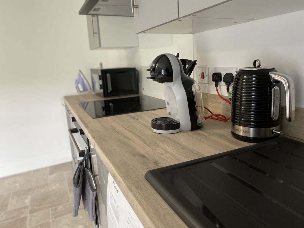 The fully equipped large kitchen, part of the open plan living area, includes all of the items, cooking utensils, pots and pans that you would expect to find in your own home, making dining in easy.