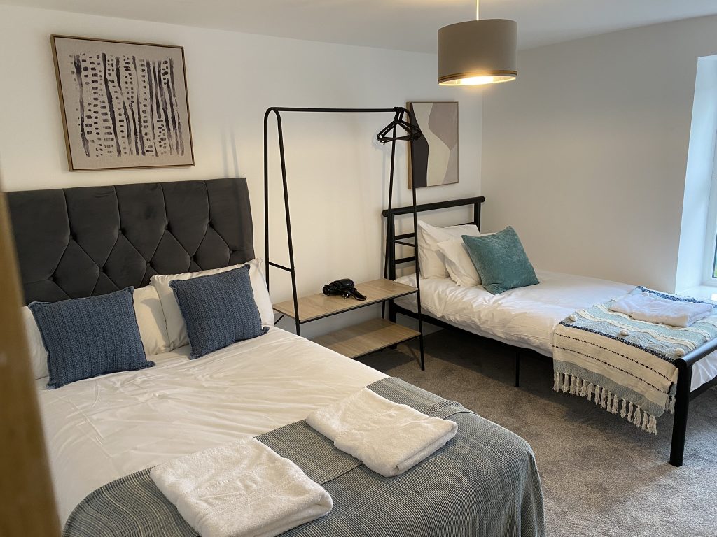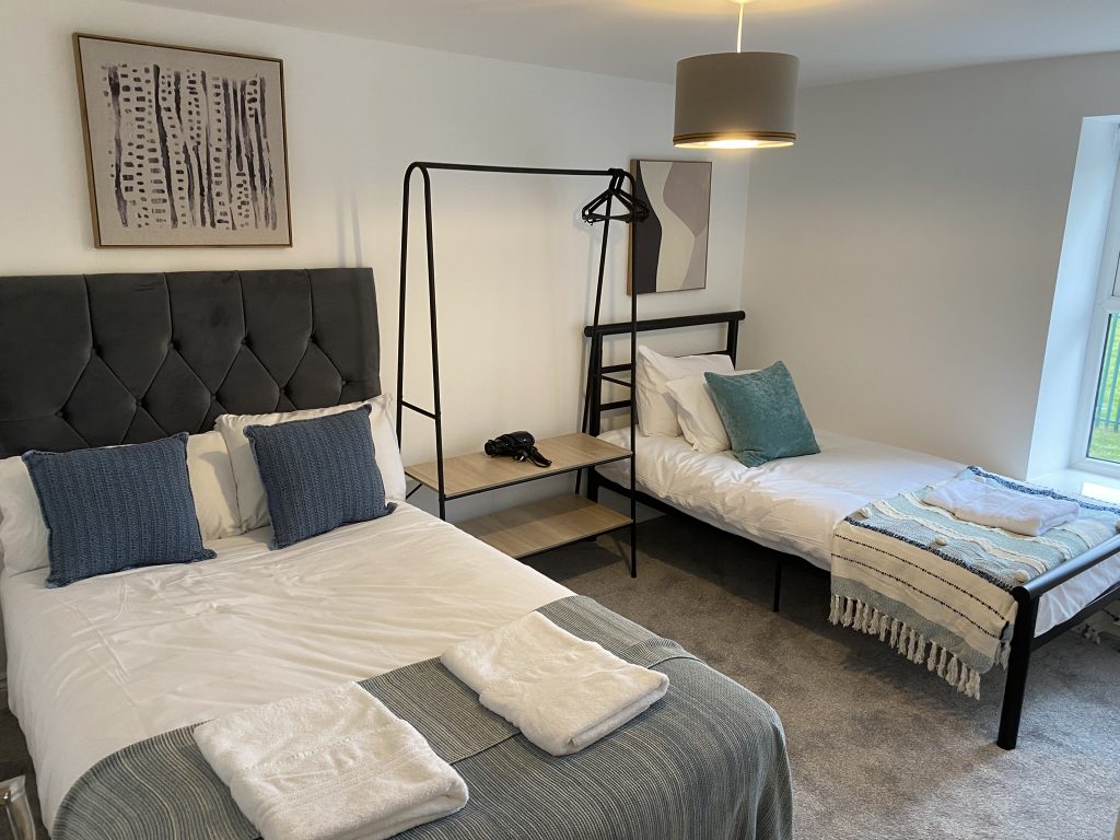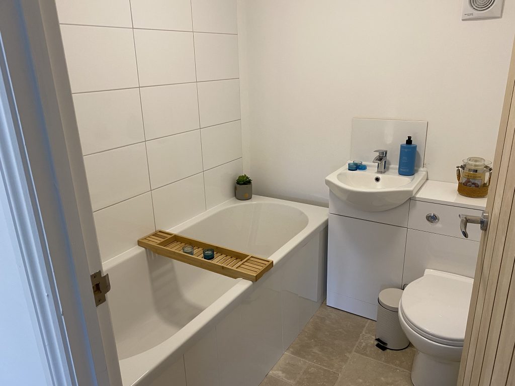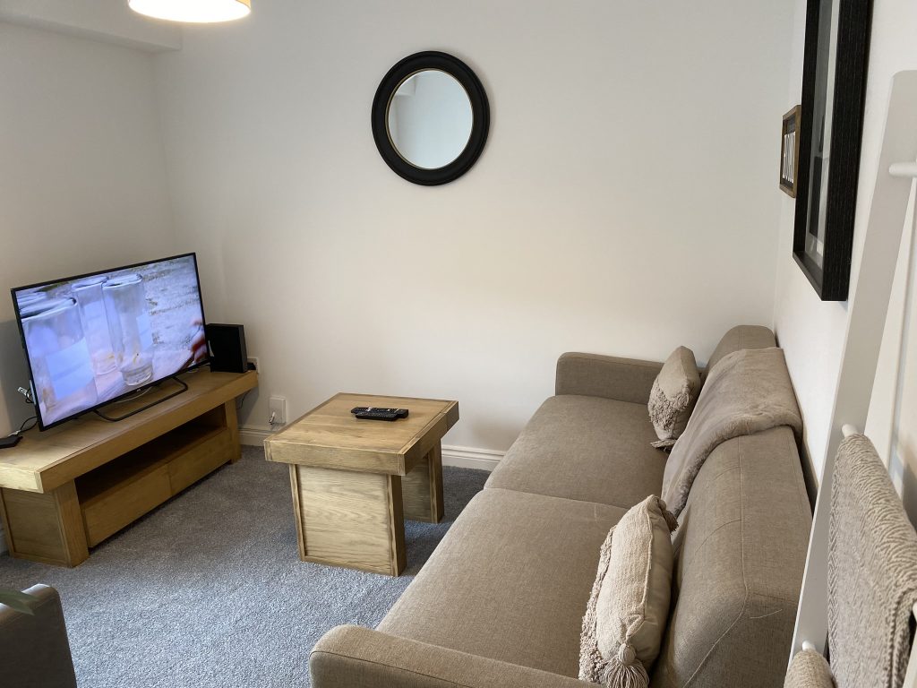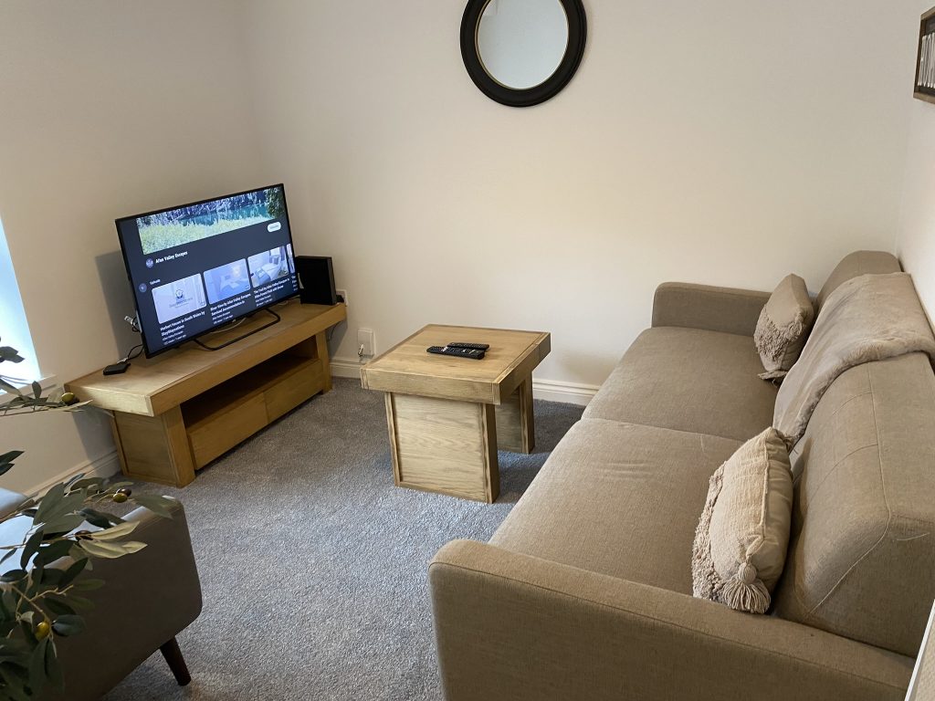 The property comprises of 2 double bedrooms and a bathroom on the first floor, a living room with smart TV and a separate shower room on the second floor.