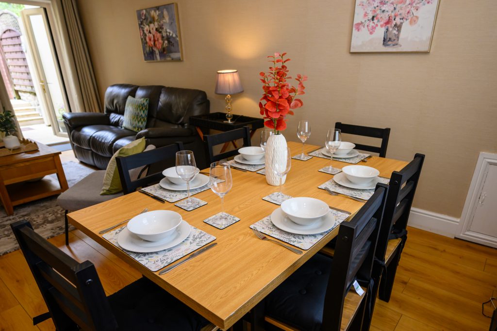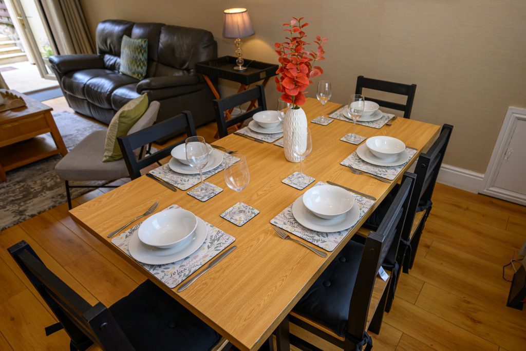 Downstairs you have a good sized living area and dining room with a table that can accommodate all five guests.